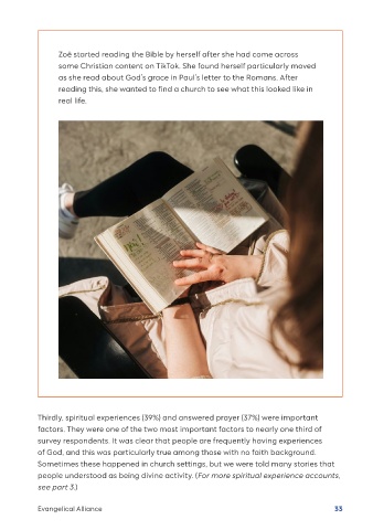 Thirdly, spiritual experiences (39%) and answered prayer (37%) were important