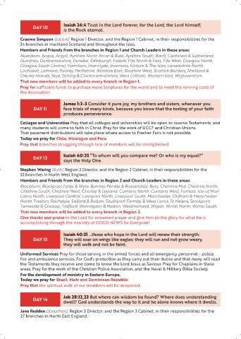 areas. Pray for the work of the Christian Police Association, and the Naval & Military Bible Society.