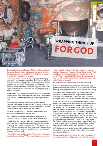 Chris Axelby, Pastoral Support Officer and a member of reply. I quickly looked in the door pocket of my car, I
